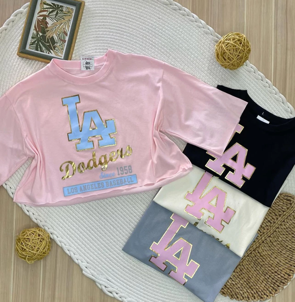 Cropped com manga curta.