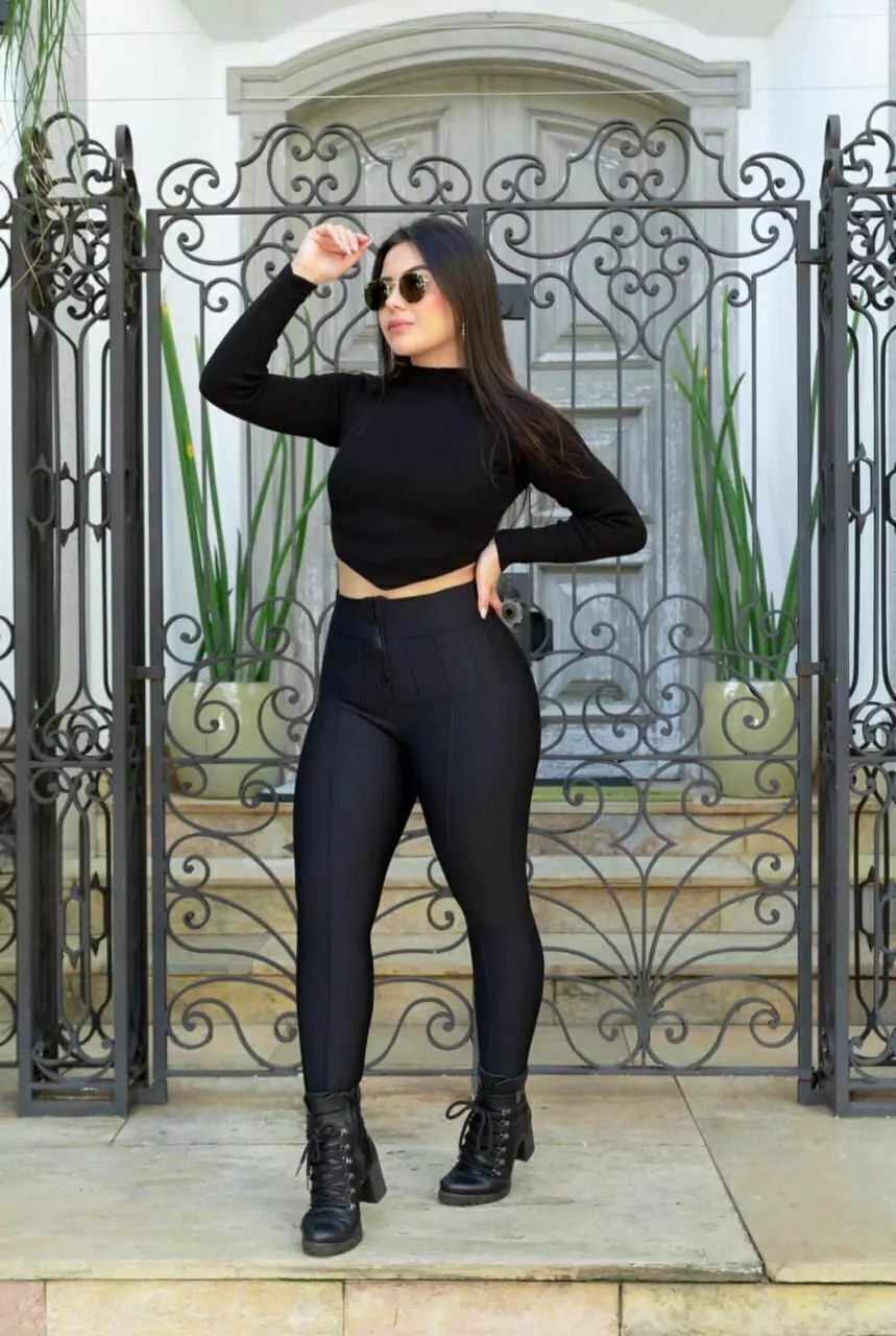 Calça lipo de comprenssão, flanelada por dentro e zíper fake.