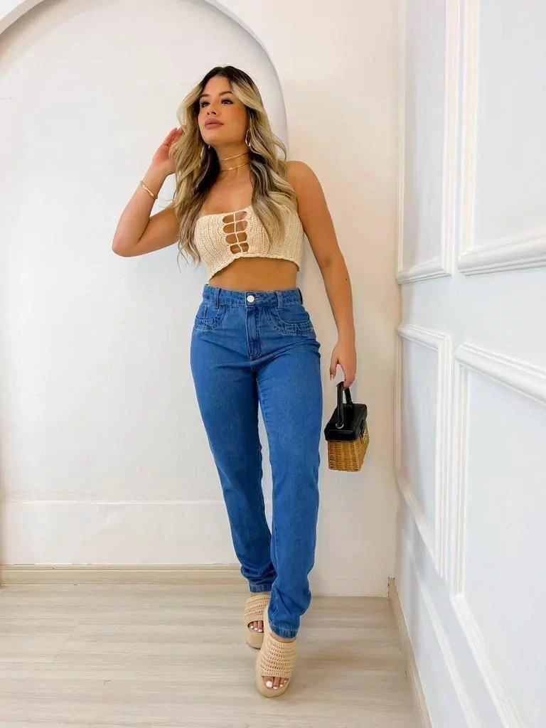 Calça jeans Mom sem elastano.