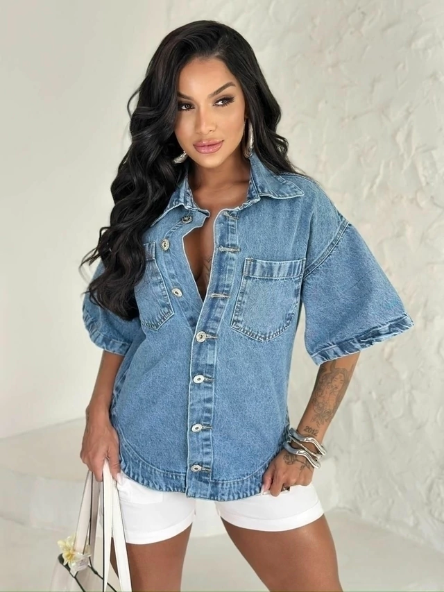 Camisa Jeans, confeccionada em jeans 100% algodão. Possui bolsos frontais e fechamento frontal por botões de metal, uma peça super versátil, ideal para looks all jeans!