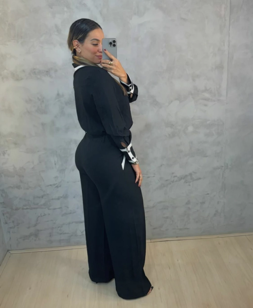 Descubra a elegância do Conjunto Fernanda, composto por uma calça e uma camisa em viscose de caimento impecável.