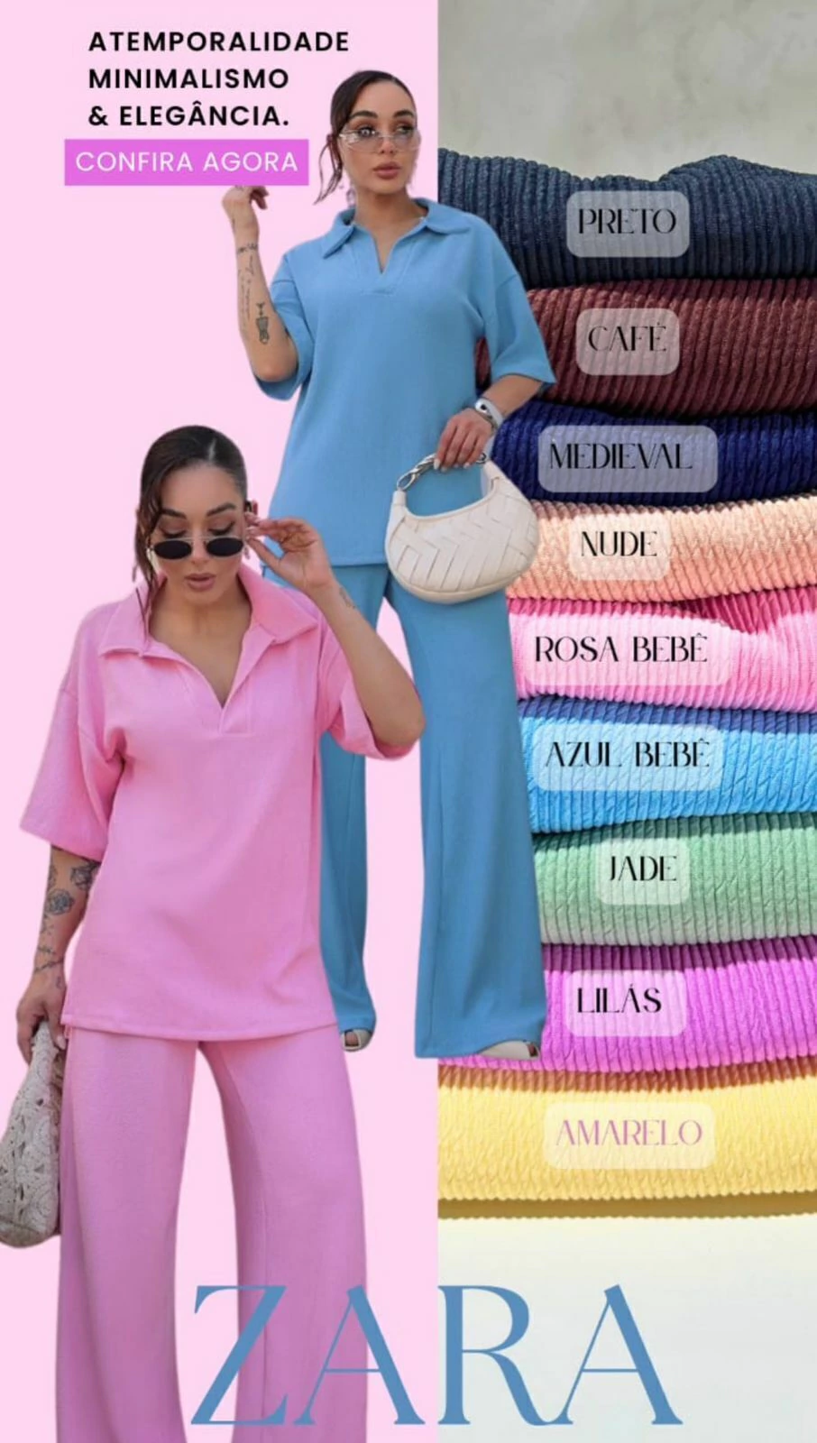 Conjunto feito com tecido anarruga que garante um visual moderno e textura únca.