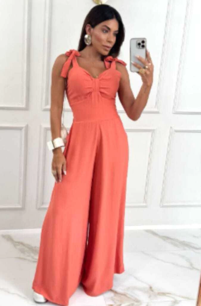 Macacão longo com bojo, com lastex nas costas,com amarração nos ombros.